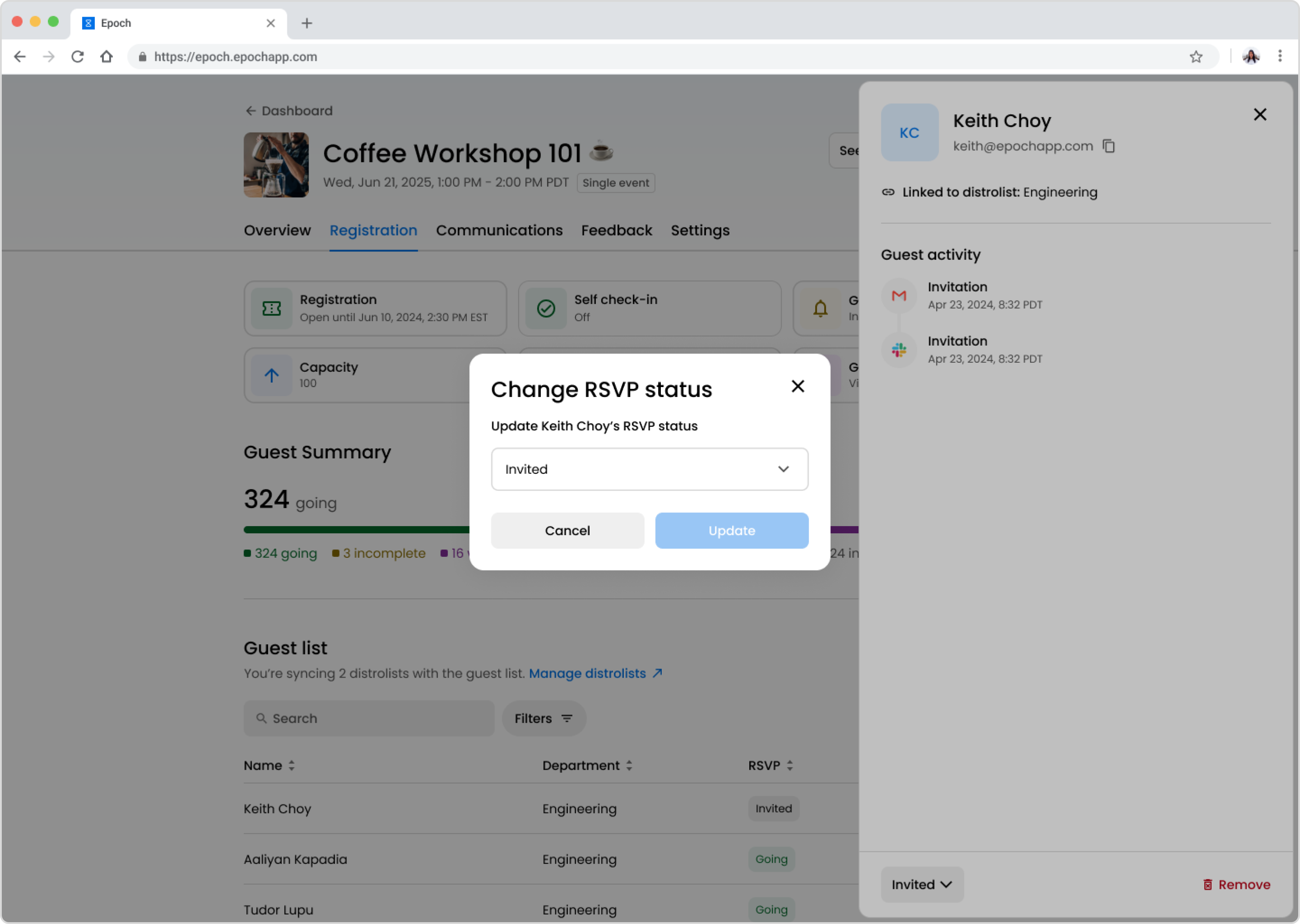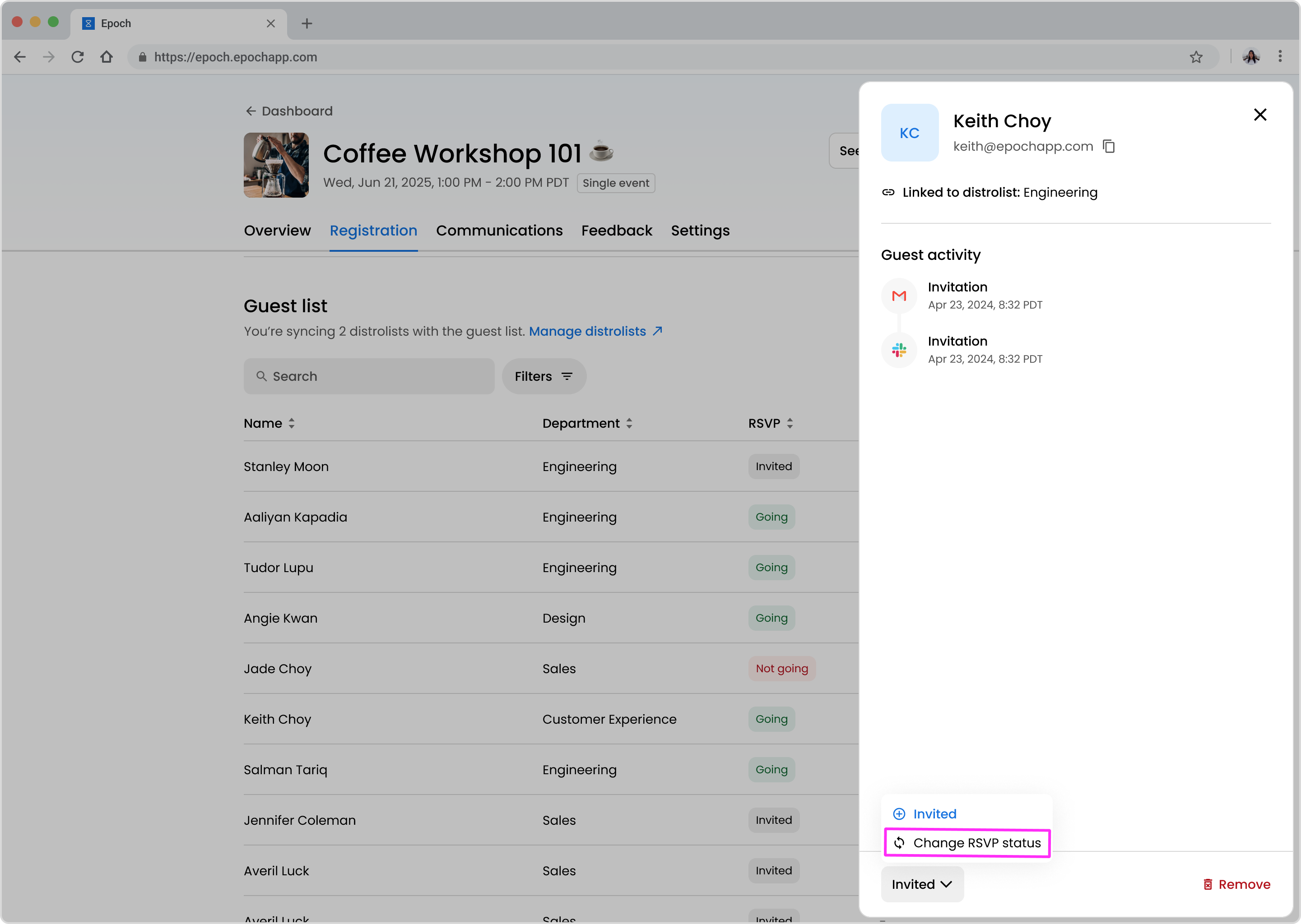 How to change a guest’s RSVP in Epoch's new editor