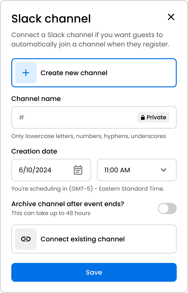 Many customers use event-specific Slack channels to facilitate discussions leading up to the event and use it as a place to share learnings or media after an event has ended.