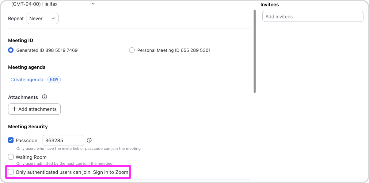 To allow external guests to join a Zoom meeting, uncheck the "Require authentication to join" setting when scheduling.